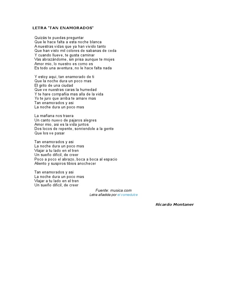 Letra Tan Enamorados De Montaner Pdf